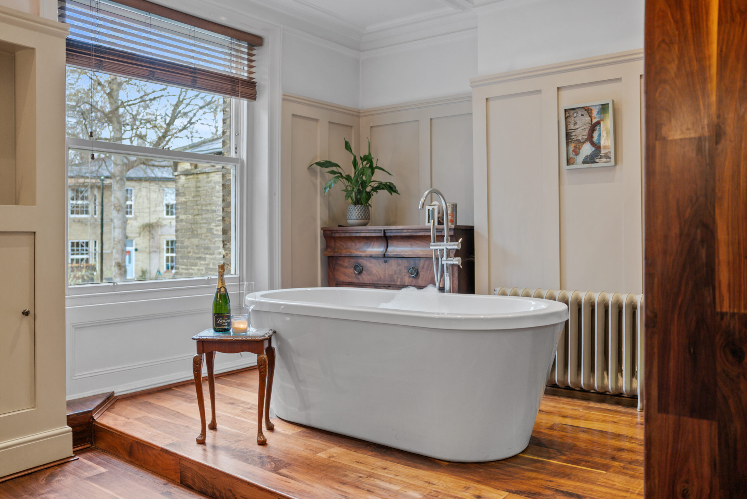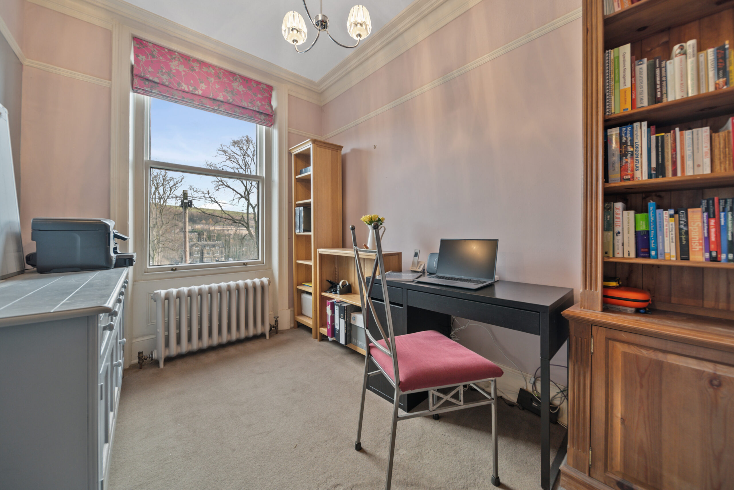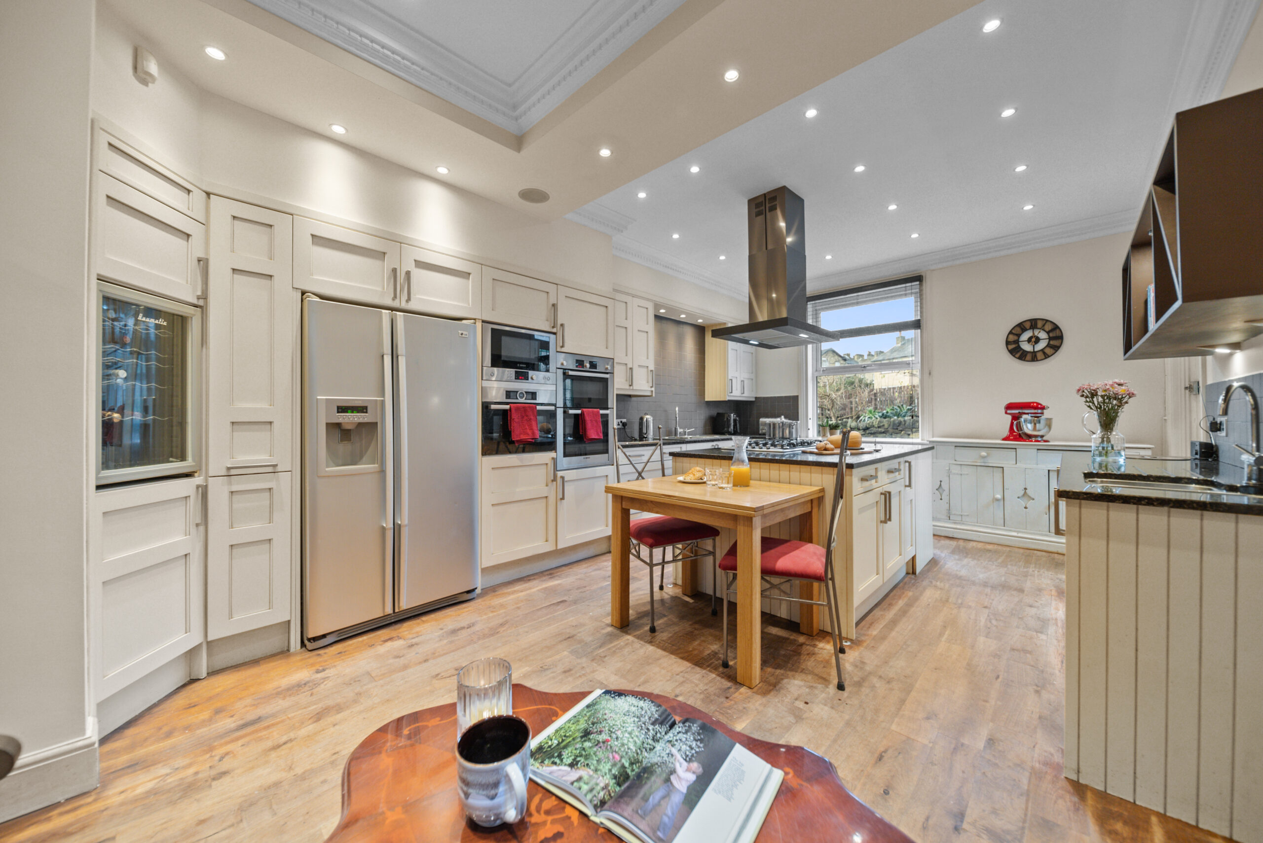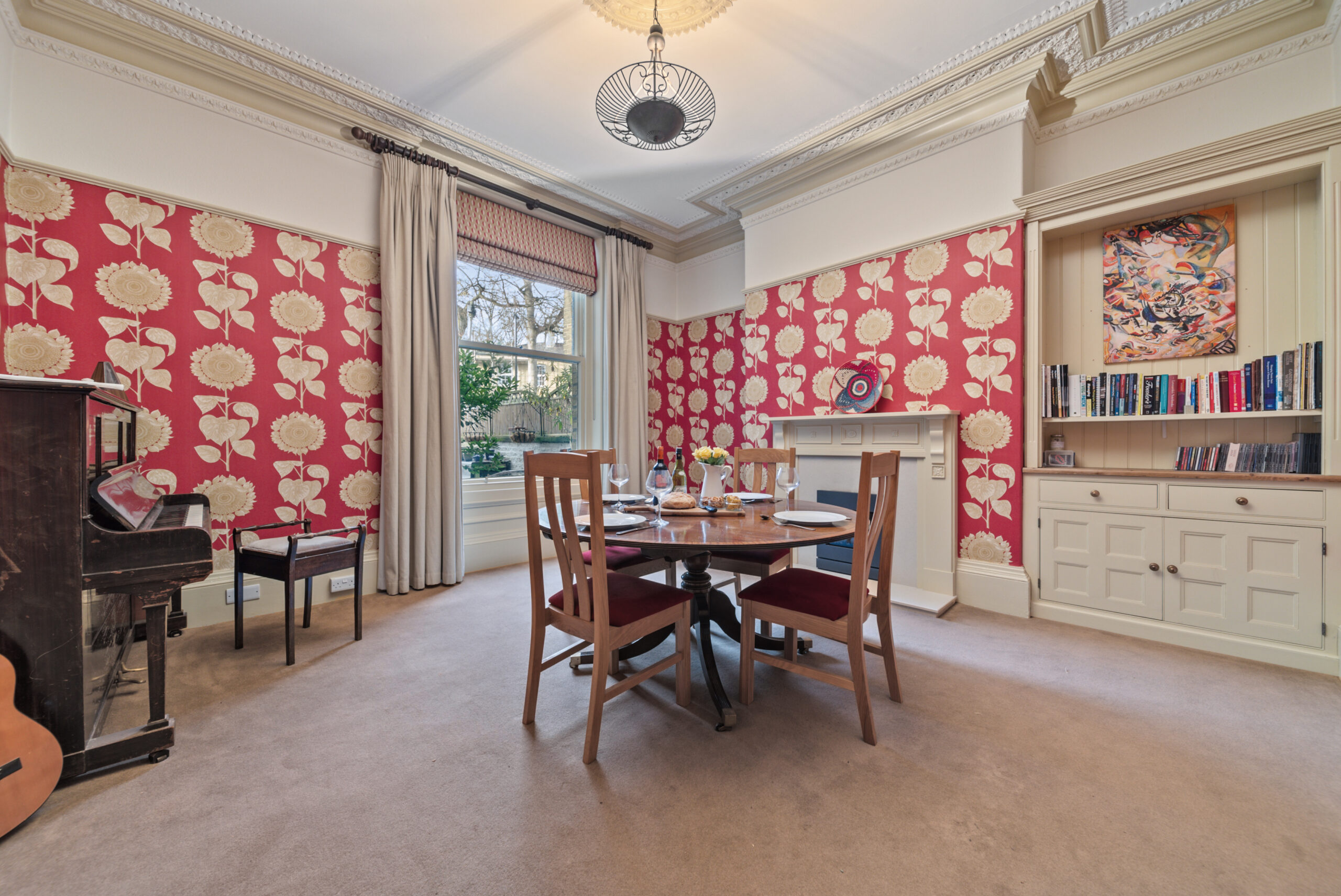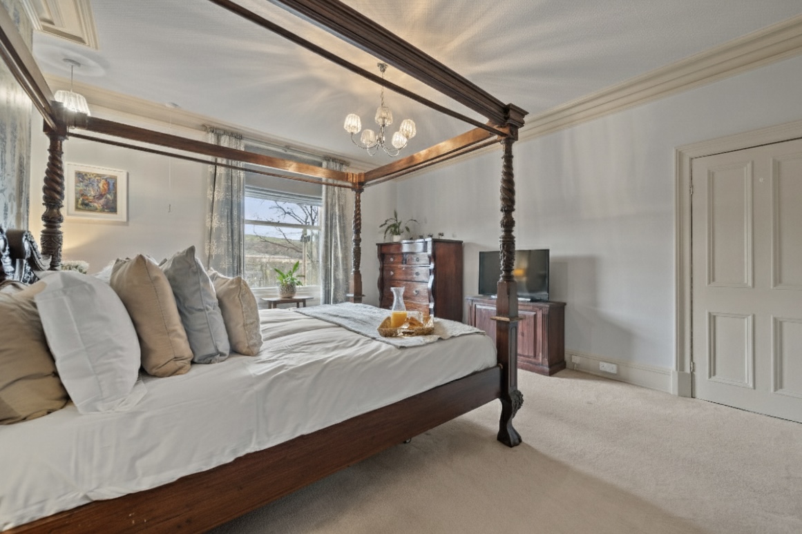 A rich blue door opens onto patterned tiles, ornate cornicing and warm panelling that speak plainly of its Victorian roots. Fireside reception rooms, a generous kitchen, six bedrooms, extensive cellars and gated parking create an elegant, practical home moments from Halifax and Manor Heath.
