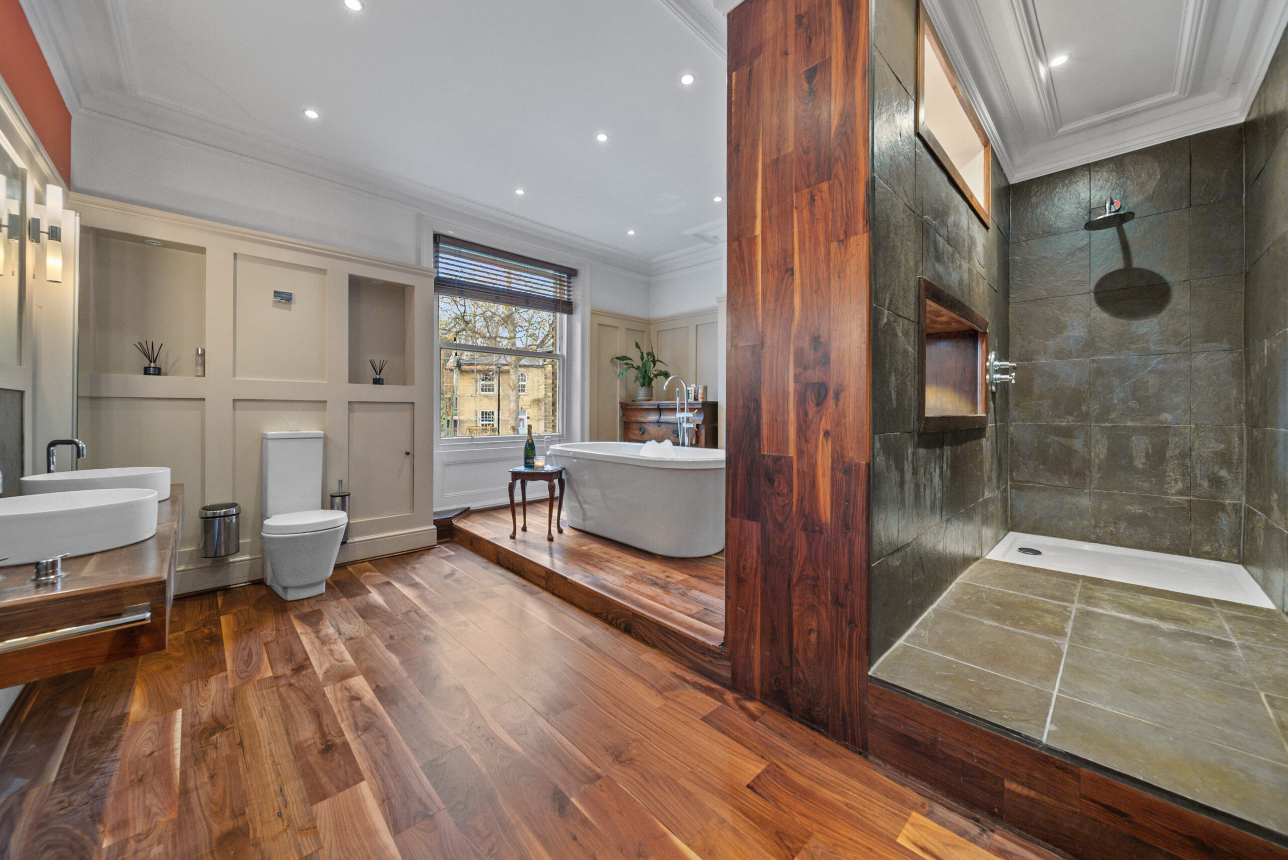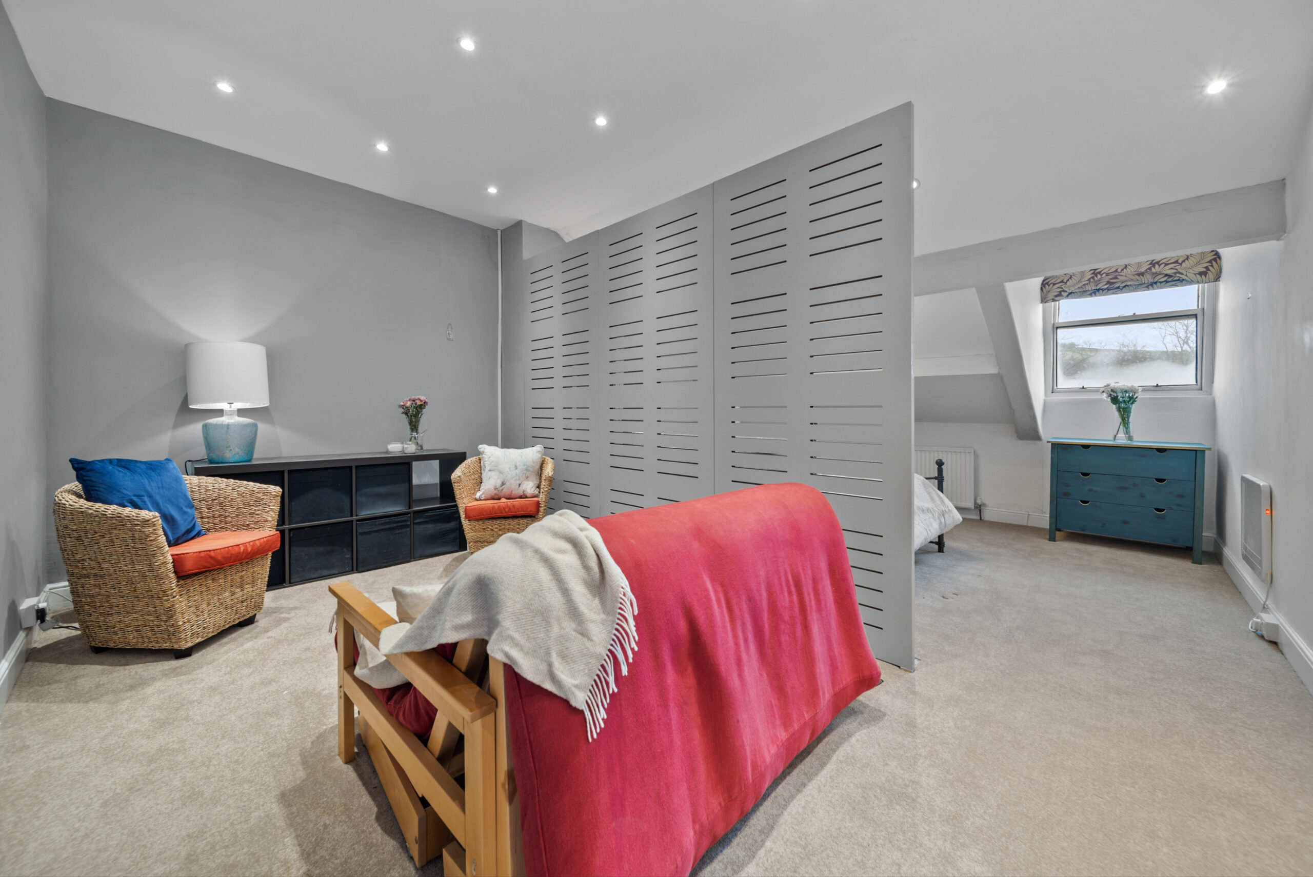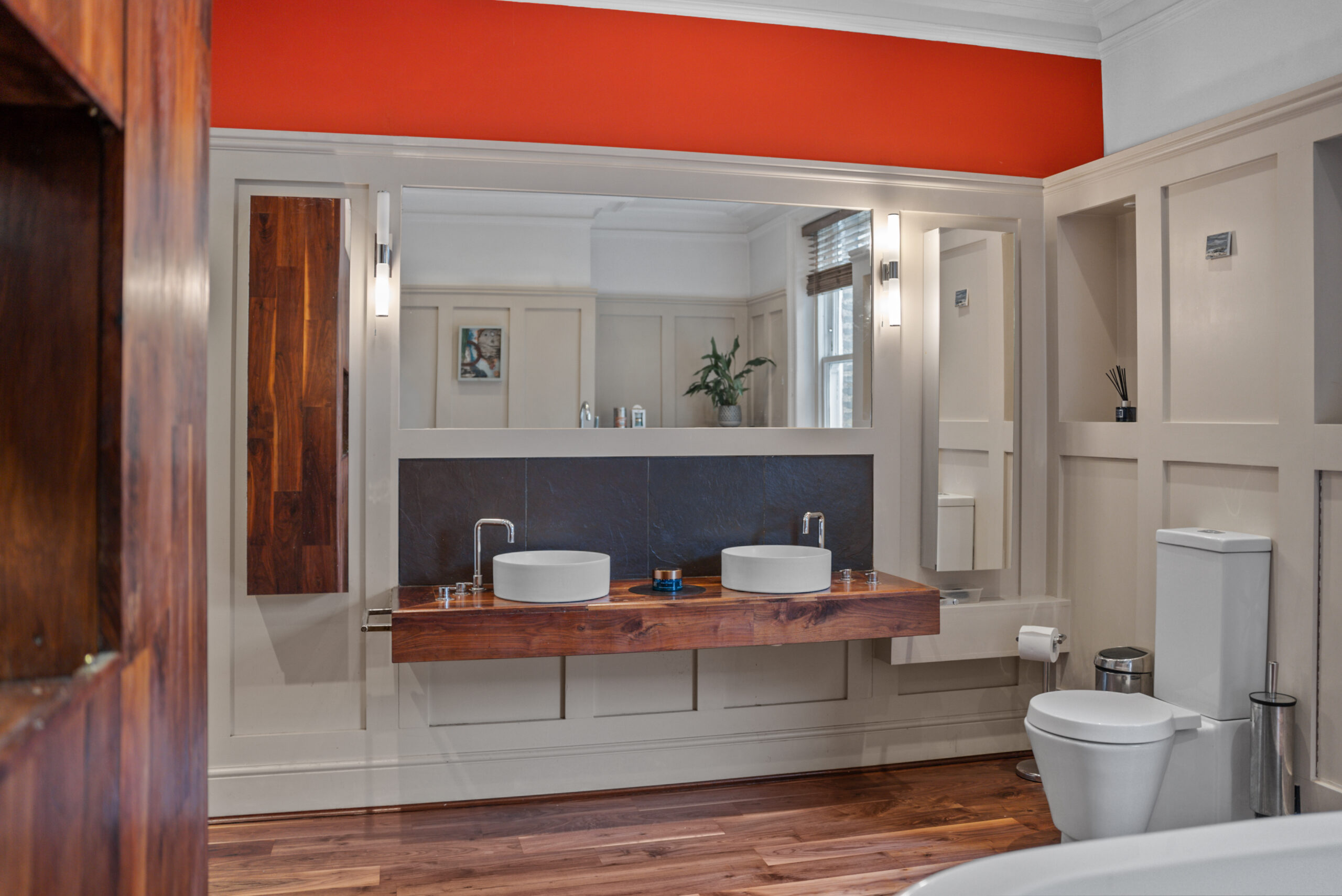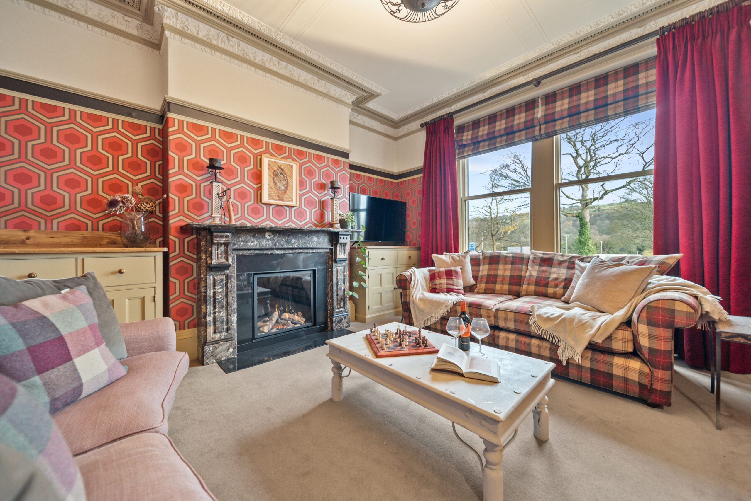 A rich blue door opens onto patterned tiles, ornate cornicing and warm panelling that speak plainly of its Victorian roots. Fireside reception rooms, a generous kitchen, six bedrooms, extensive cellars and gated parking create an elegant, practical home moments from Halifax and Manor Heath.