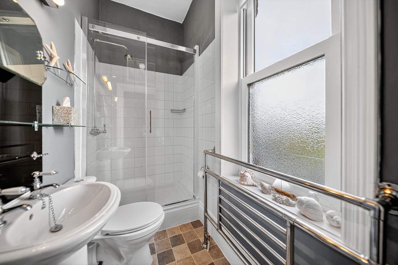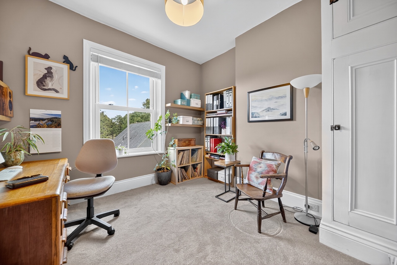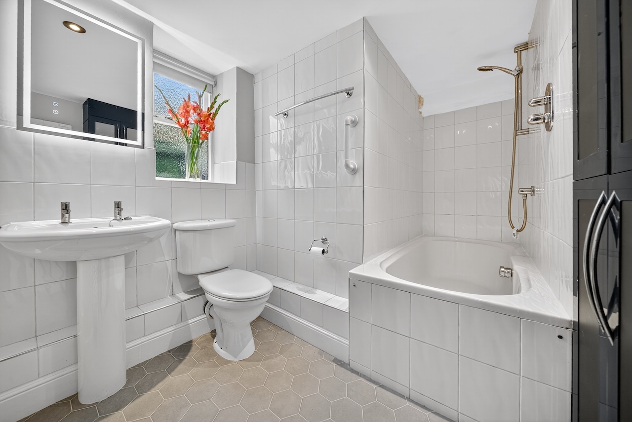 Behind its handsome stone frontage lies a residence of four double bedrooms, three bathrooms and two inviting reception rooms. Beneath, a separate garden flat extends the sense of generosity, with its own bedroom, sitting room and bathroom, and the possibility of being reincorporated into the main home with ease. The residence feels both elegant and practical, offering the proportions of the Victorian era with a contemporary rhythm of living.