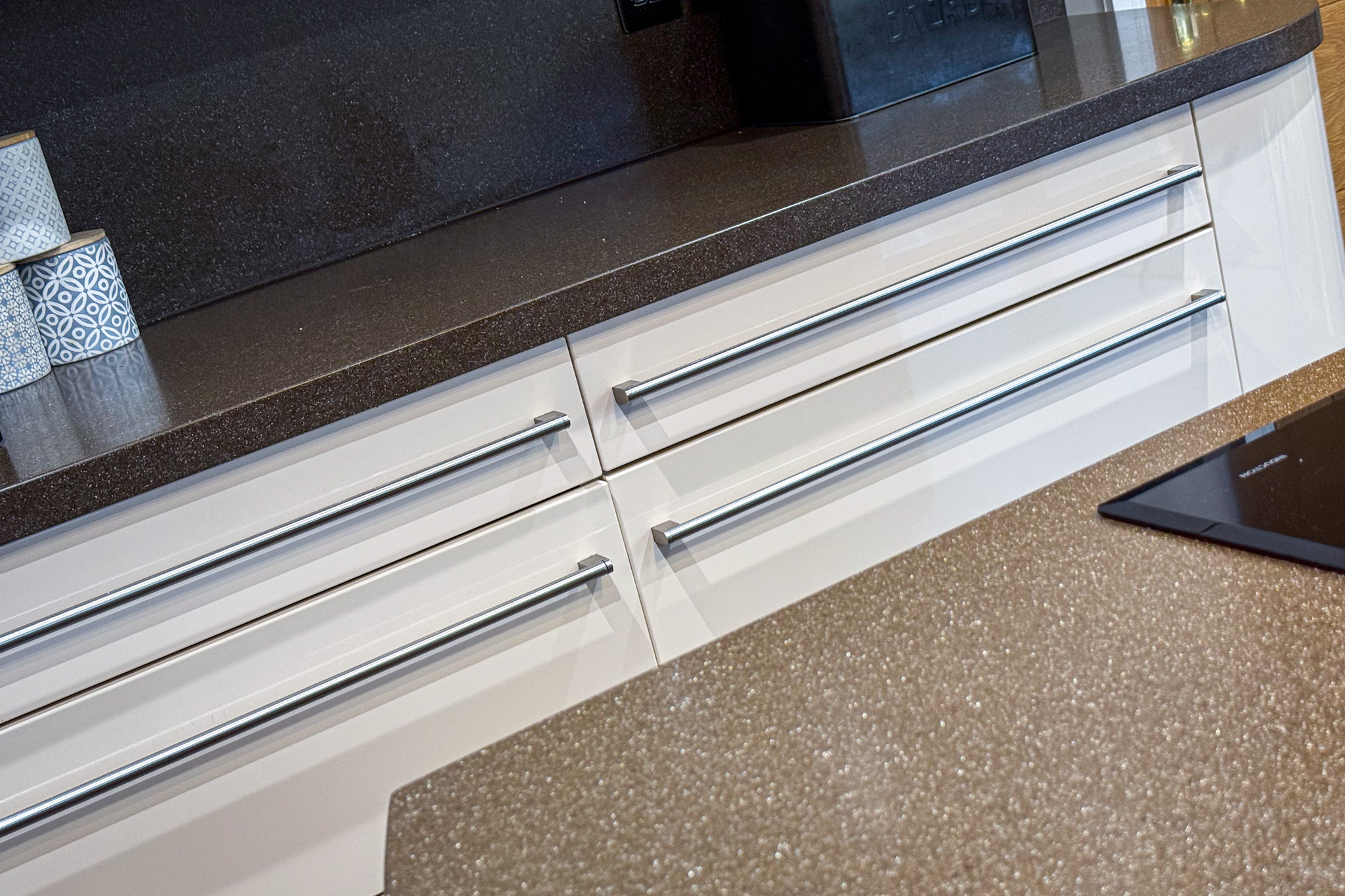 The window looks out onto the gardens at the rear of the house, where the planted herb garden is at your fingertips. Modern units, in Champagne and Latte colour scheme are topped with Encore worktops with matching upstands, and are fitted around the perimeter of the kitchen area with a central island. Designed with the chef of the family in mind, care and attention have gone into every detail. The AEG induction hob is located on the island and acts like a professional pass when serving plates, so you can view the garden while you cook. An eye-level AEG steam baking oven and combi-grill microwave oven are integrated and the long run of work surface sits over the integrated fridge, freezer and dishwasher plus space for a 48 bottle wine fridge.