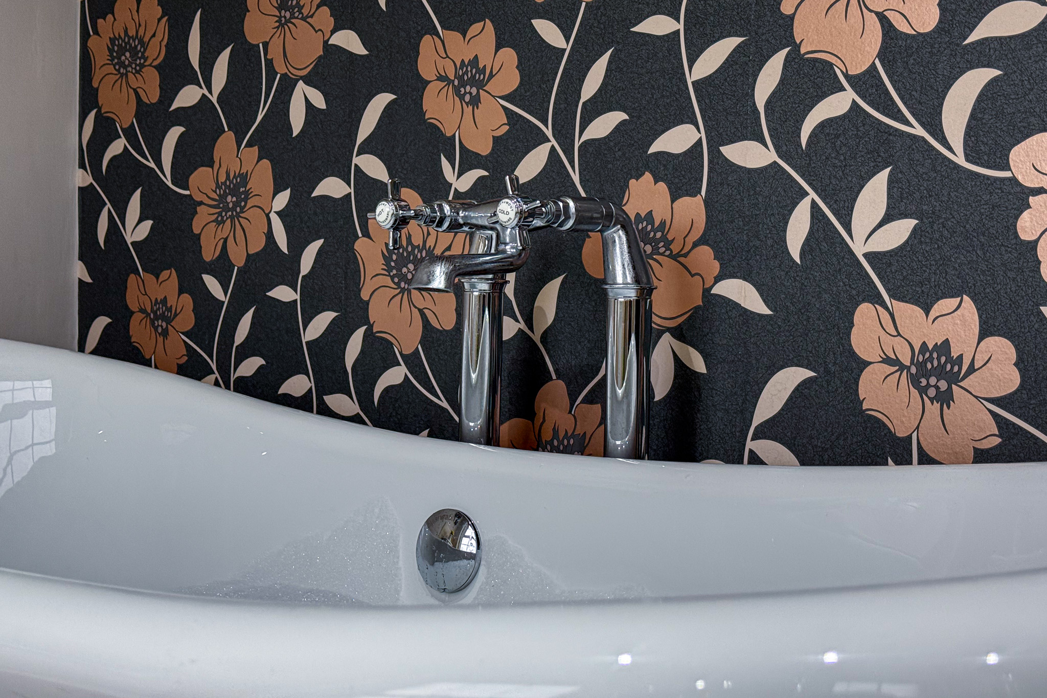 Indulge in the ultimate relaxation in the family bathroom, where a roll-top bath invites you to sink into a sea of bubbles and soak away your troubles. The WC and washbasin are set against half-tiled walls, and the separate shower cubicle for convenience.