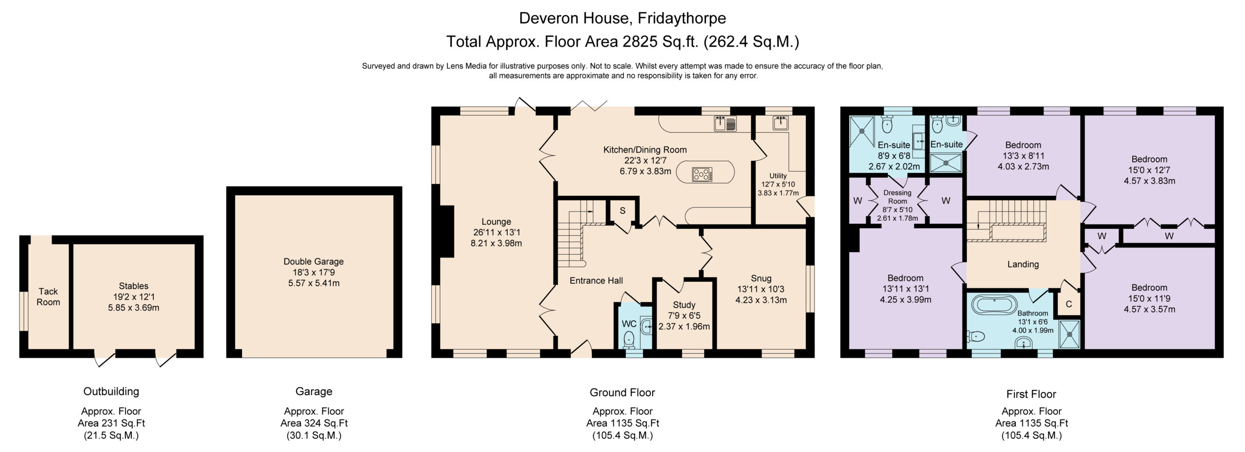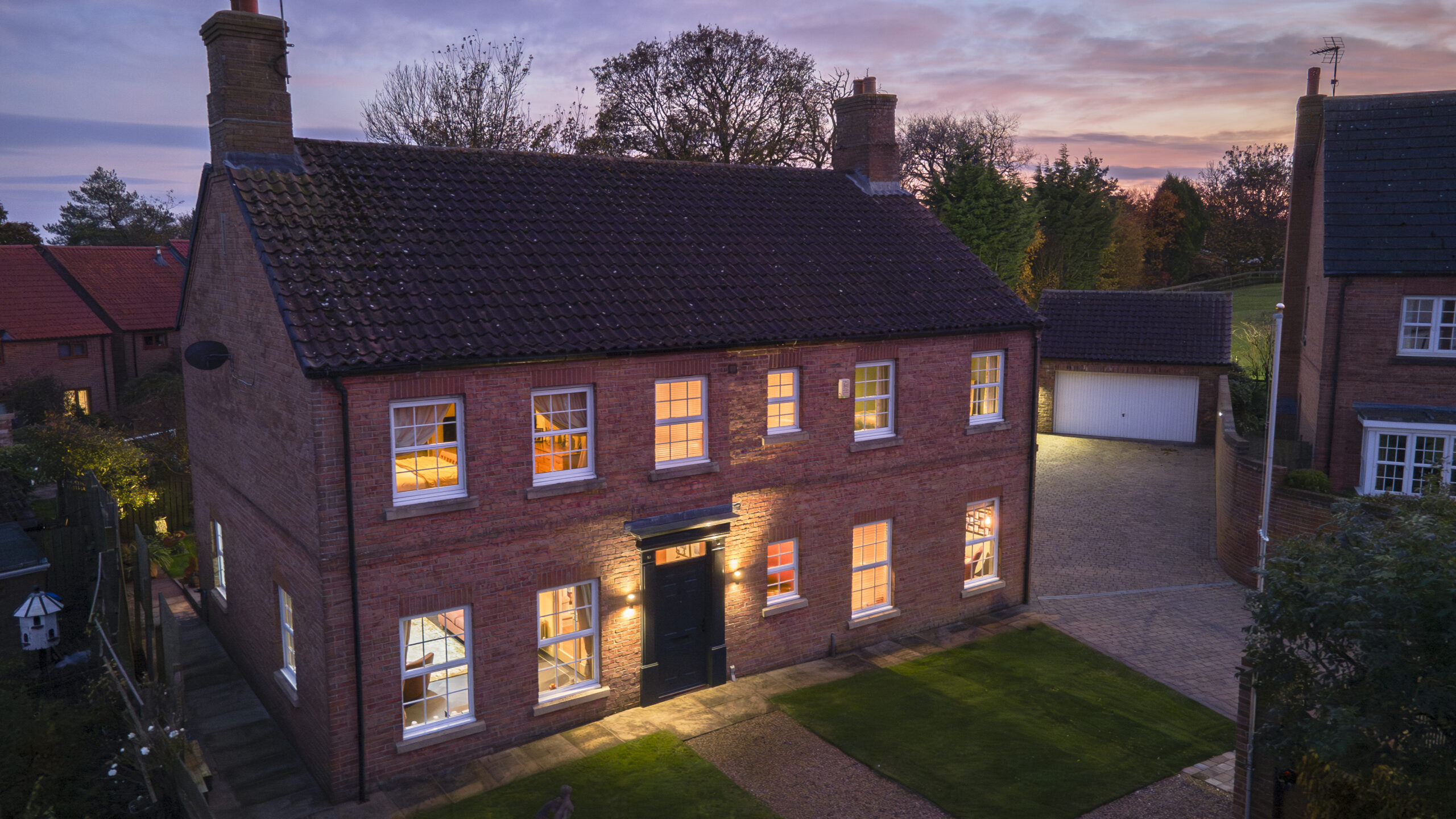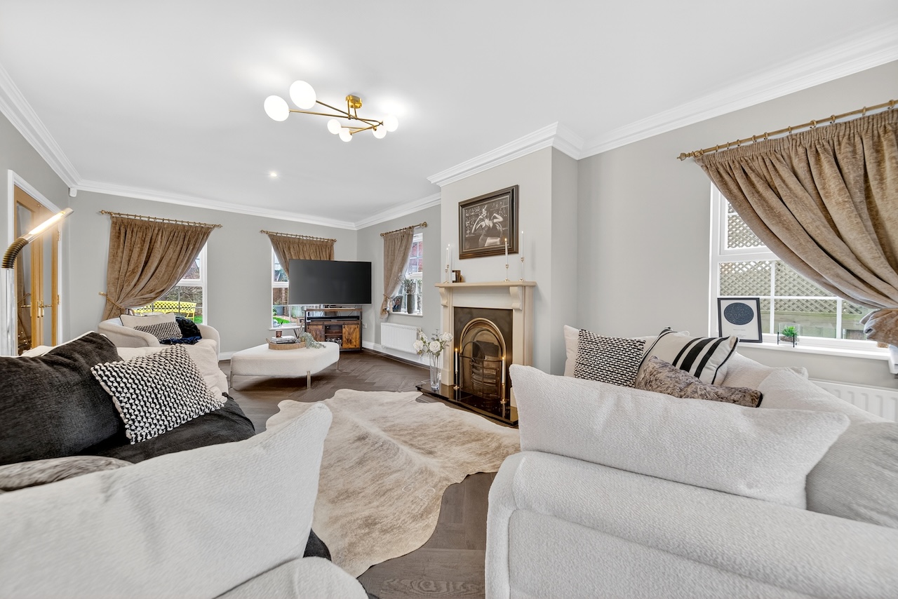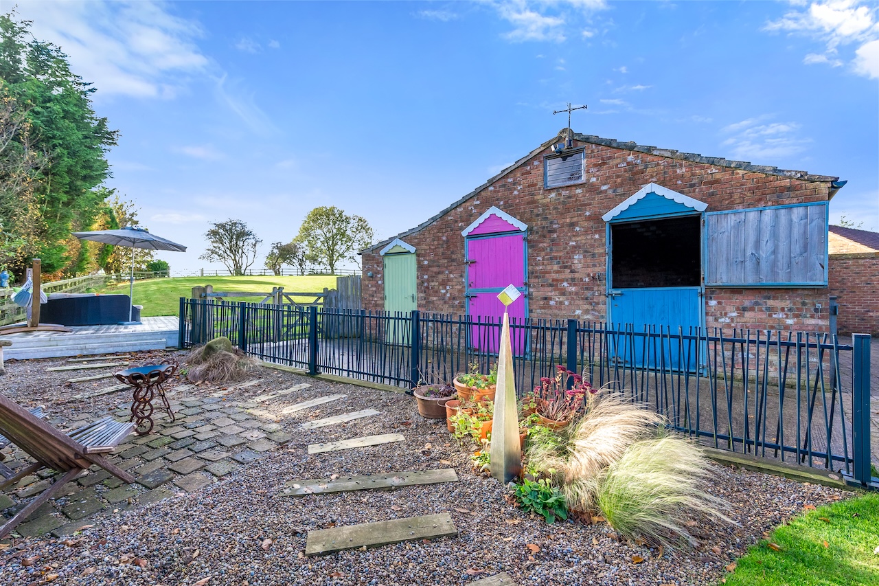 Deveron House, a light-filled family home, is tucked away at the head of this cul-de-sac. Presented to an exceptional standard throughout, you can enjoy privacy and seclusion from the rest of the world. The securely enclosed paddocks measure three-quarters of an acre and the two stables and tack room are an excellent addition.