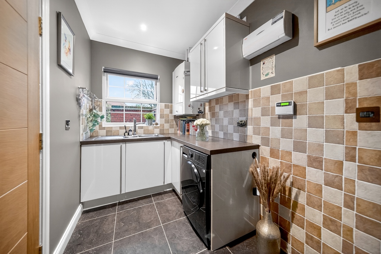 A utility room, with a door that leads out to the side of the driveway, is fitted with units to match the kitchen, with space for a washing machine and tumble dryer. Perfect for kicking off muddy boots after walking the dogs or seeing to the horses.