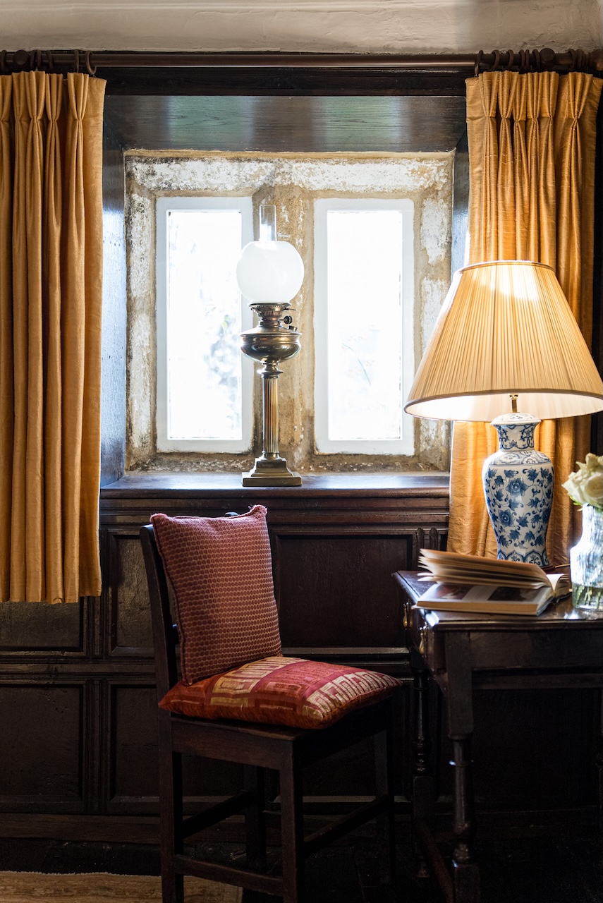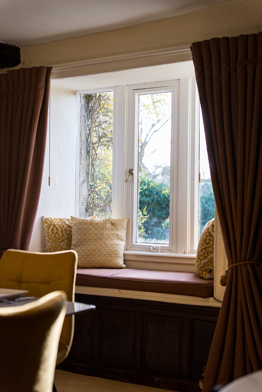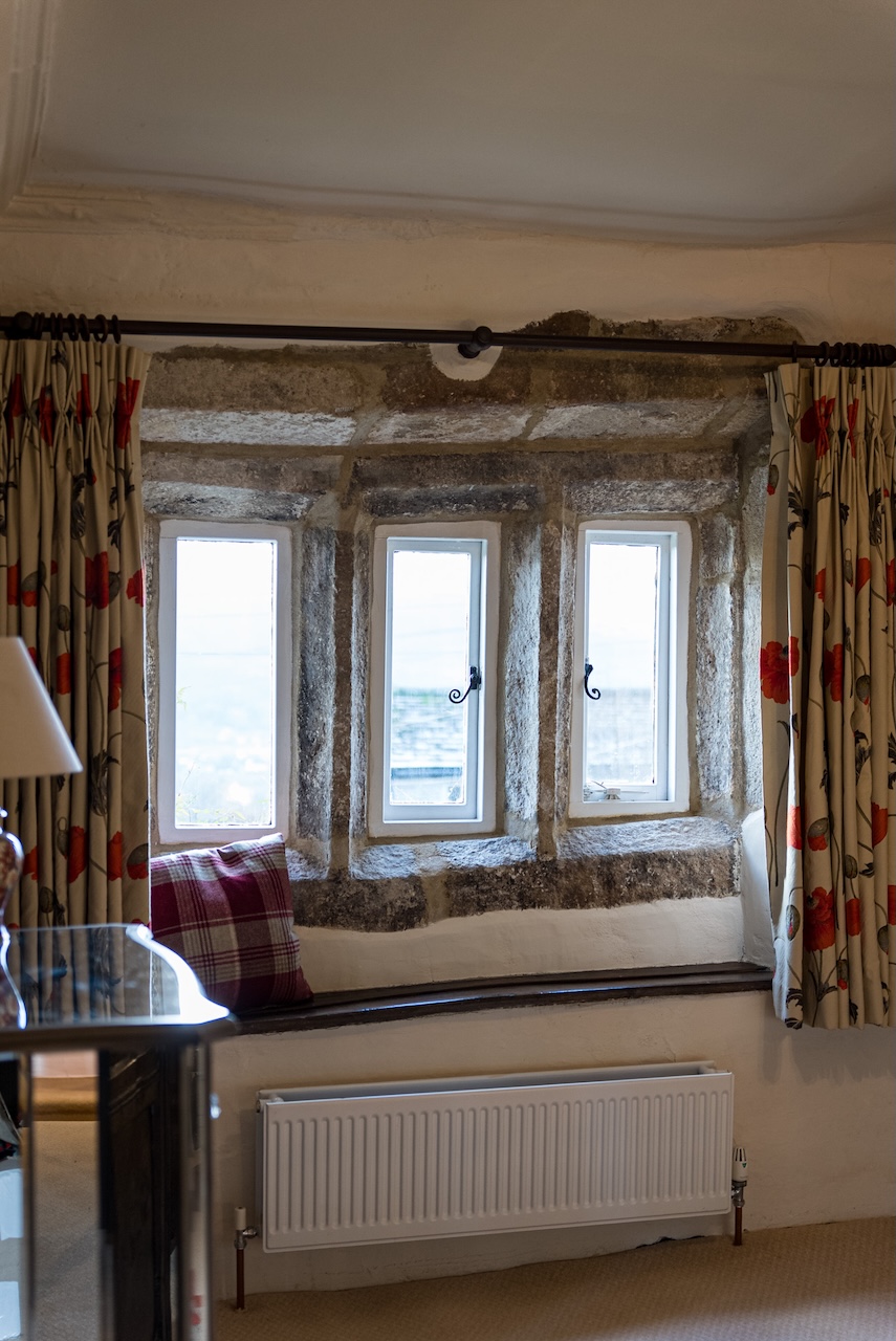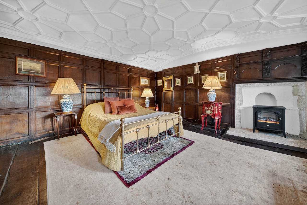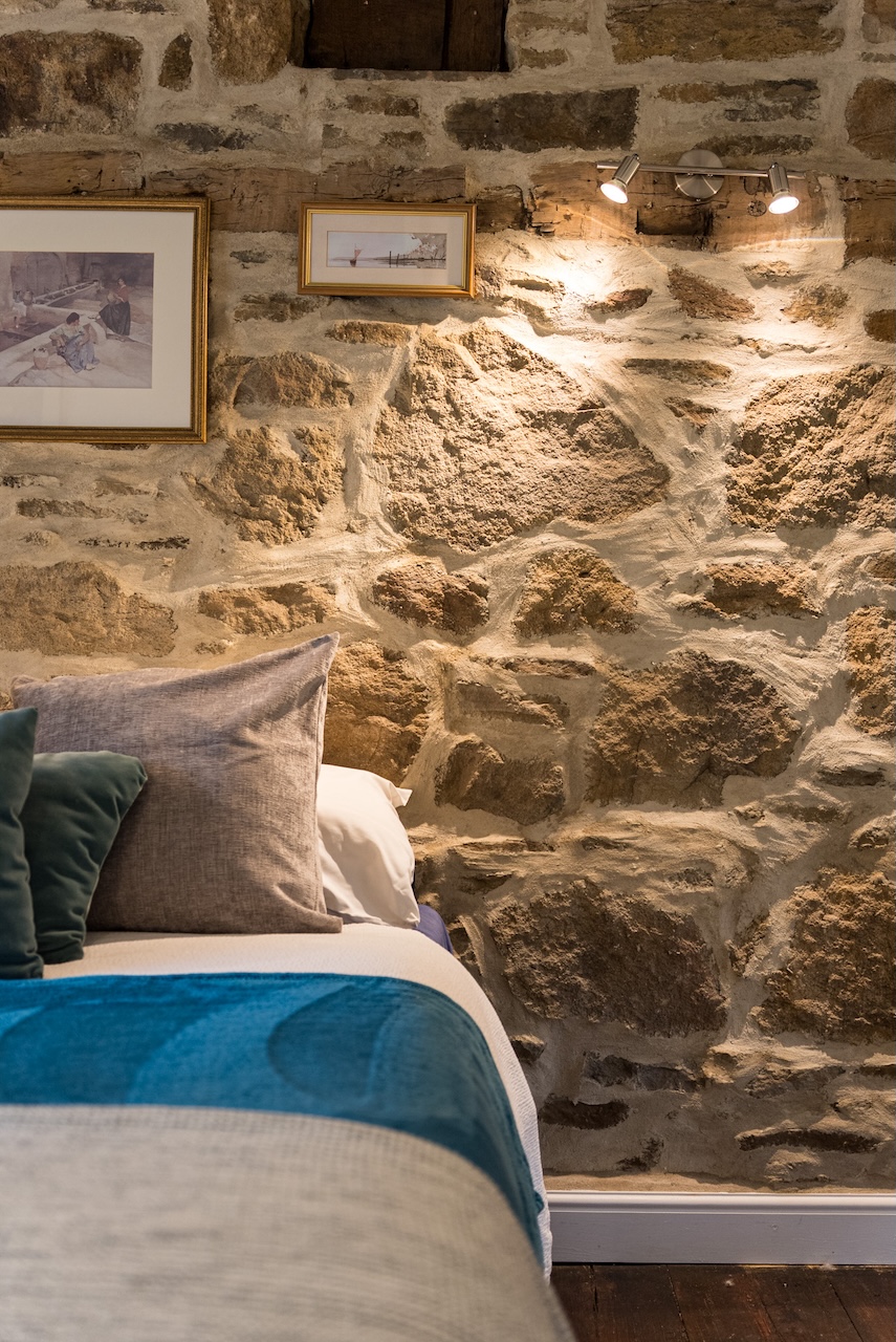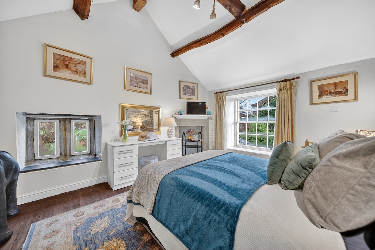 A timber gate opens to a sweeping driveway where the landscape stretches out below the home and sunlight warms the south-facing stone. Birdsong settles across the hillside and the sense of arrival feels deeply rooted in place.