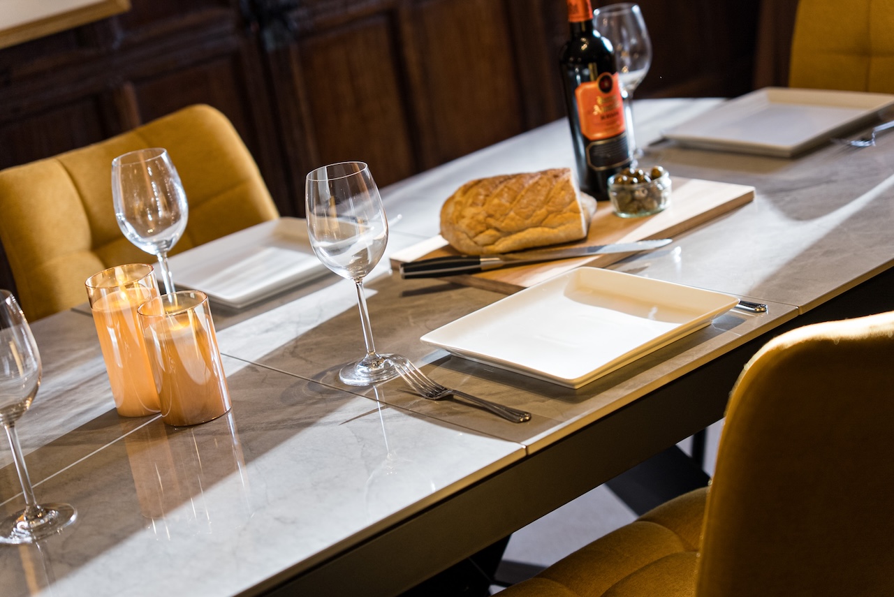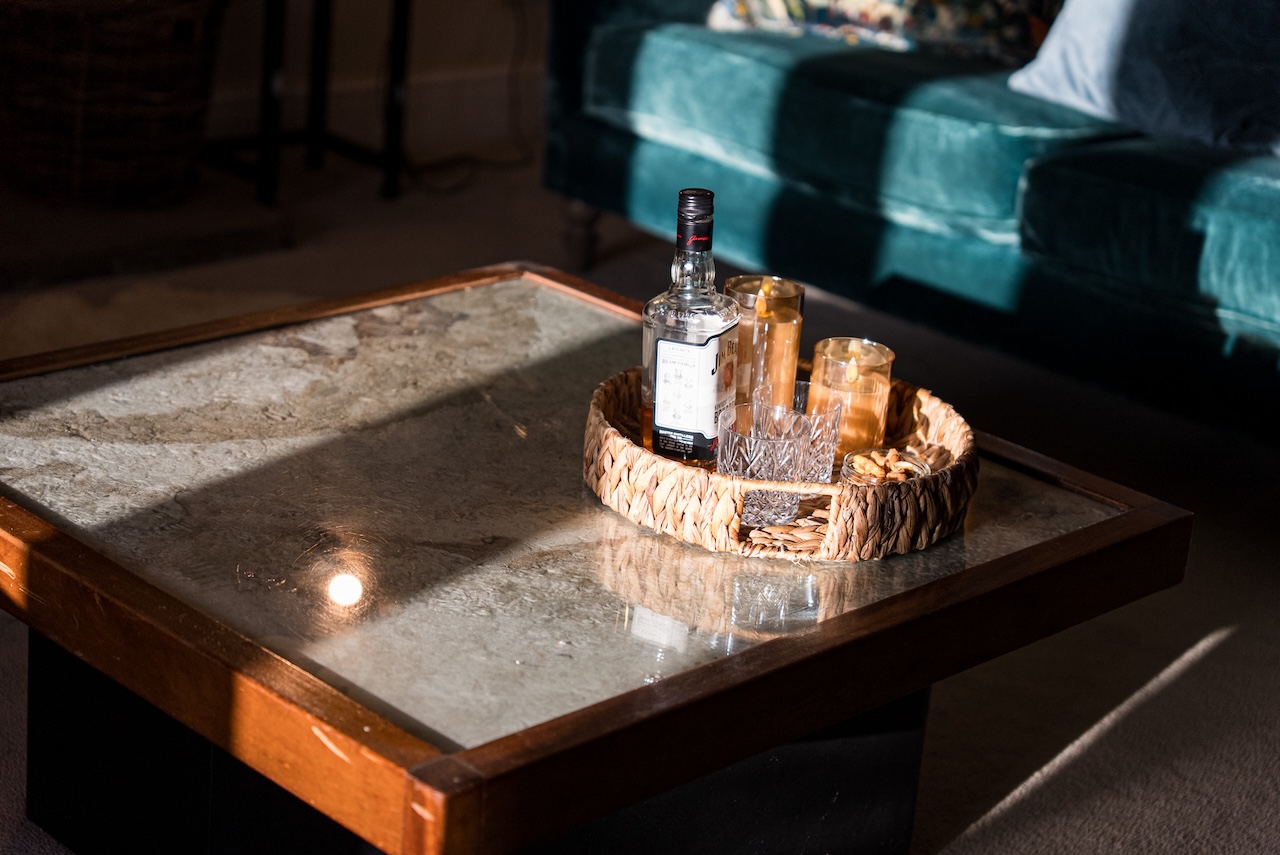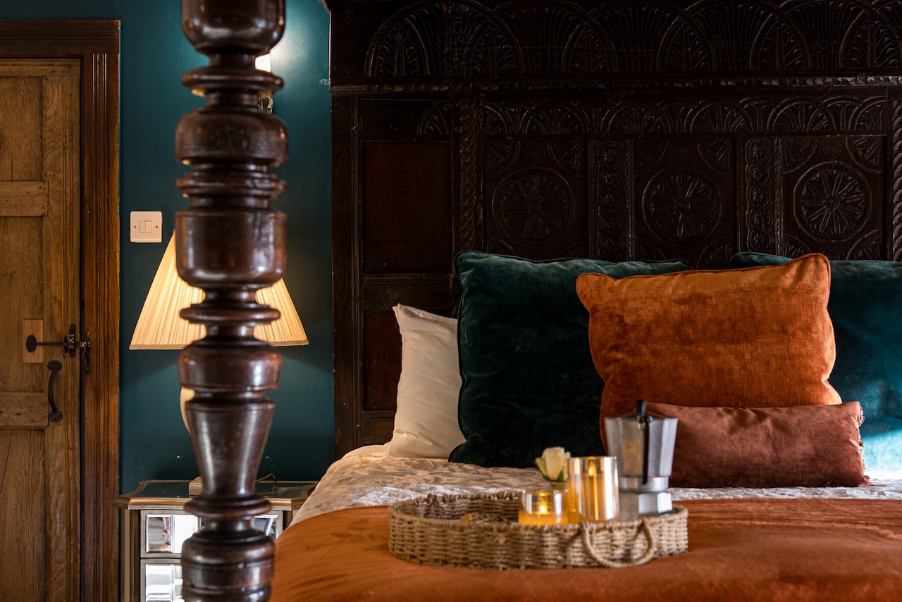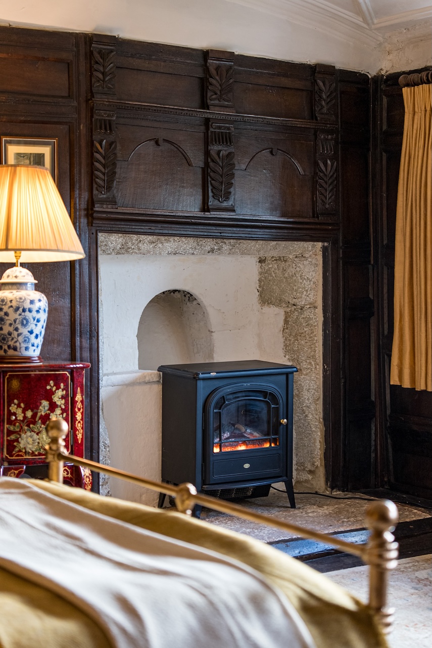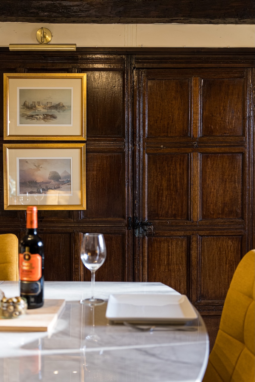 A timber gate opens to a sweeping driveway where the landscape stretches out below the home and sunlight warms the south-facing stone. Birdsong settles across the hillside and the sense of arrival feels deeply rooted in place.