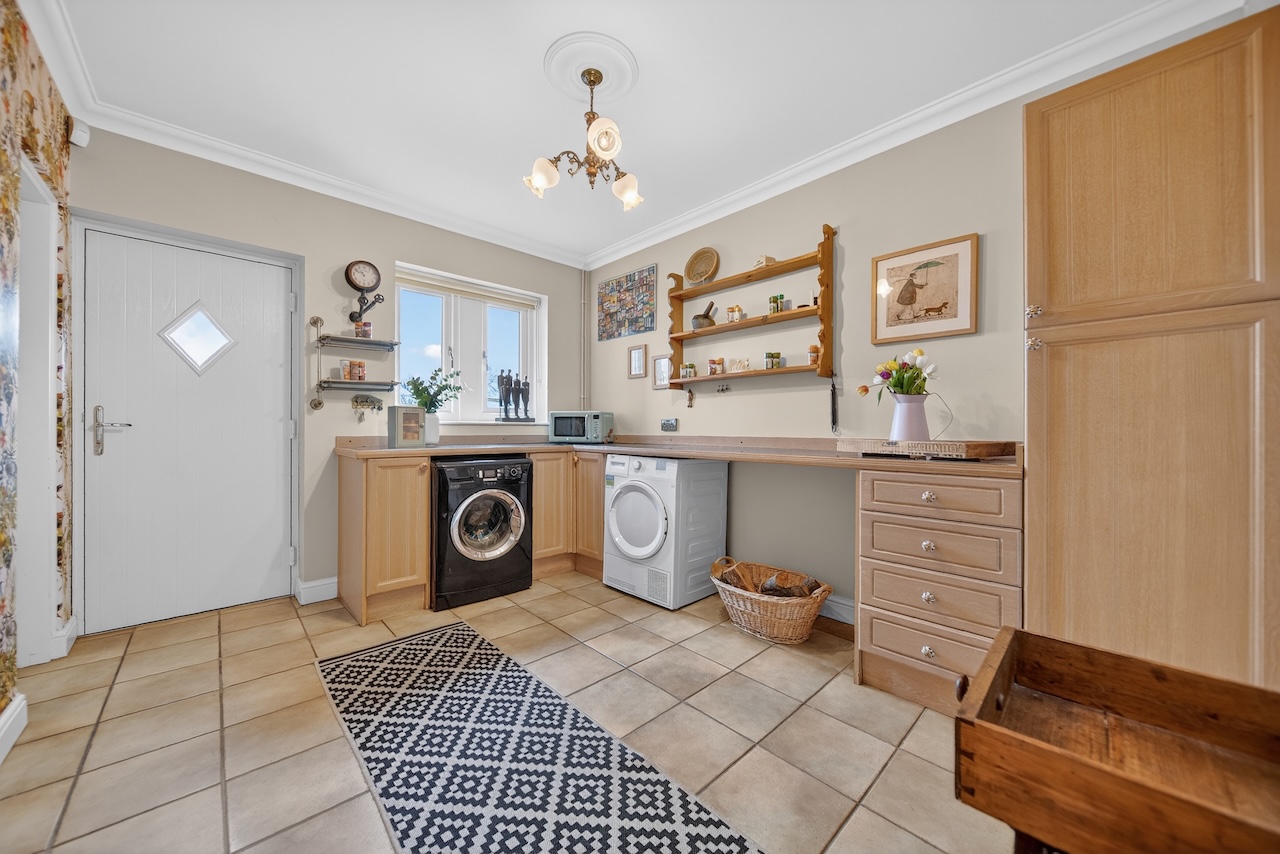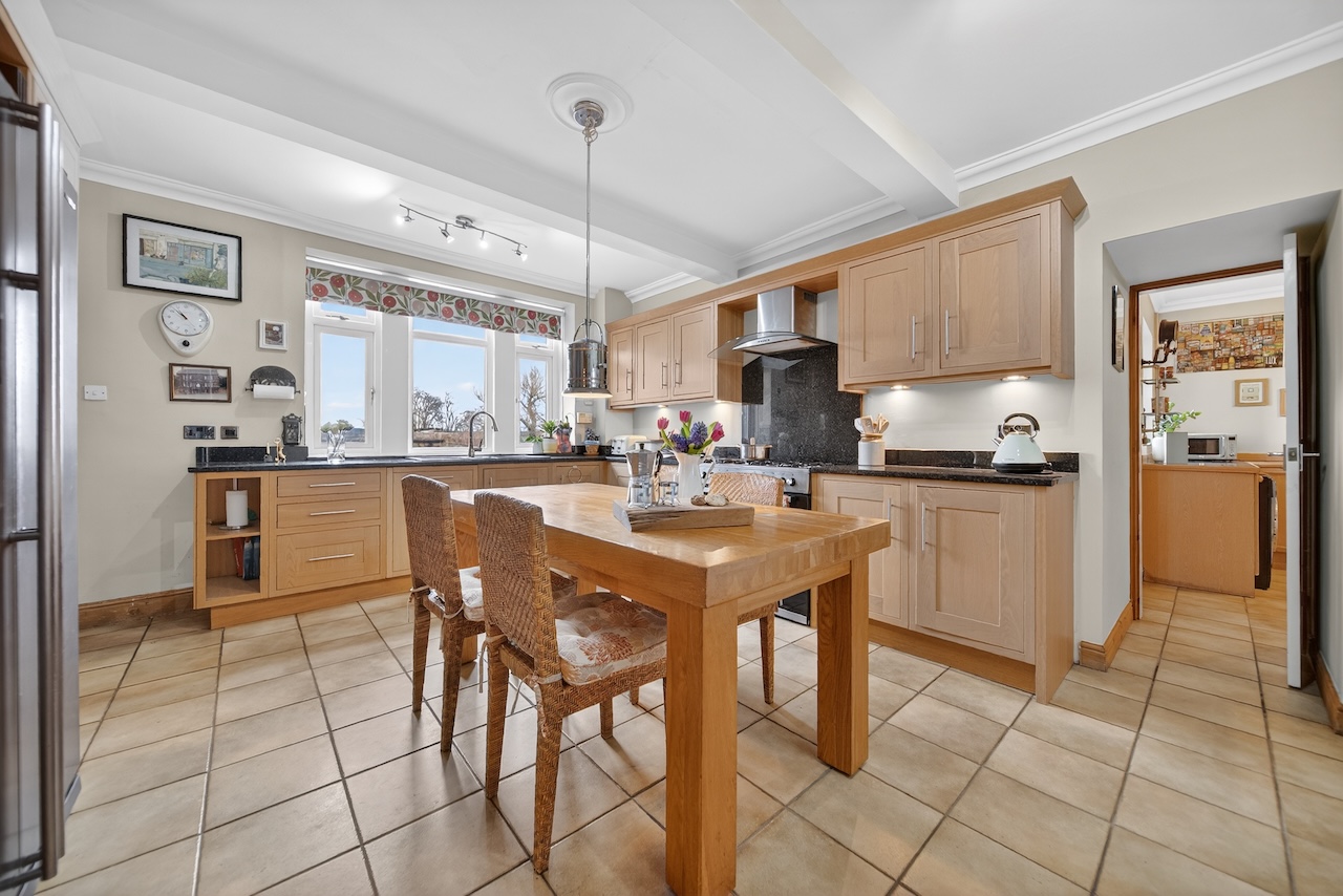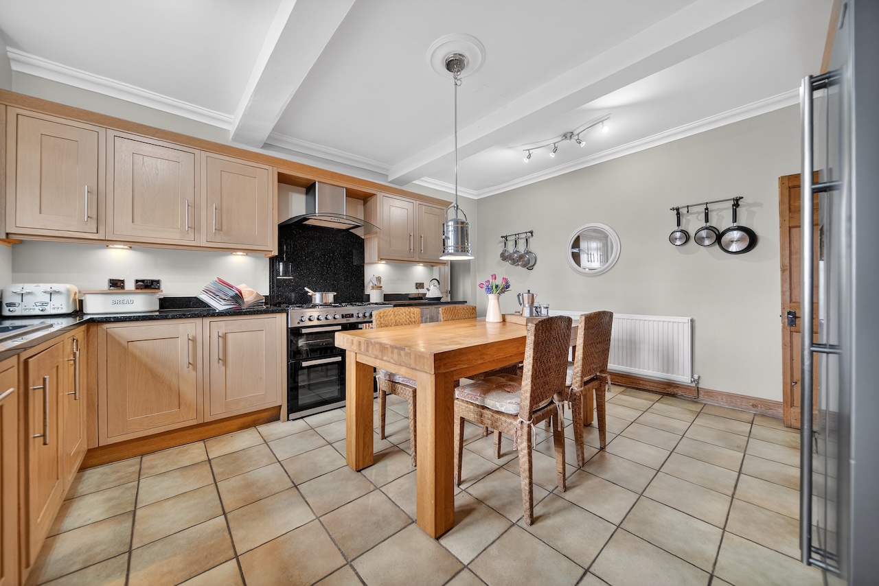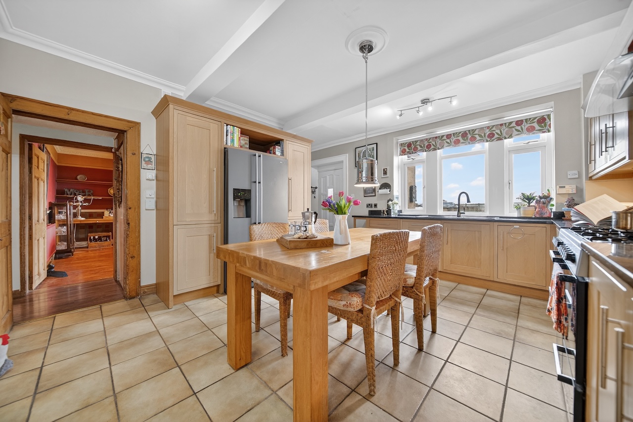 The sense of arrival is immediate. Balanced proportions lead into a welcoming front vestibule, offering a practical space for coats and boots before the home opens directly into the kitchen. With four bedrooms, four bathrooms and three reception rooms, the accommodation is generous and versatile.