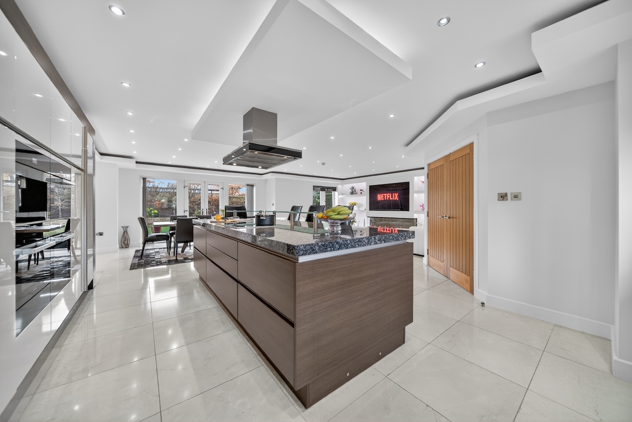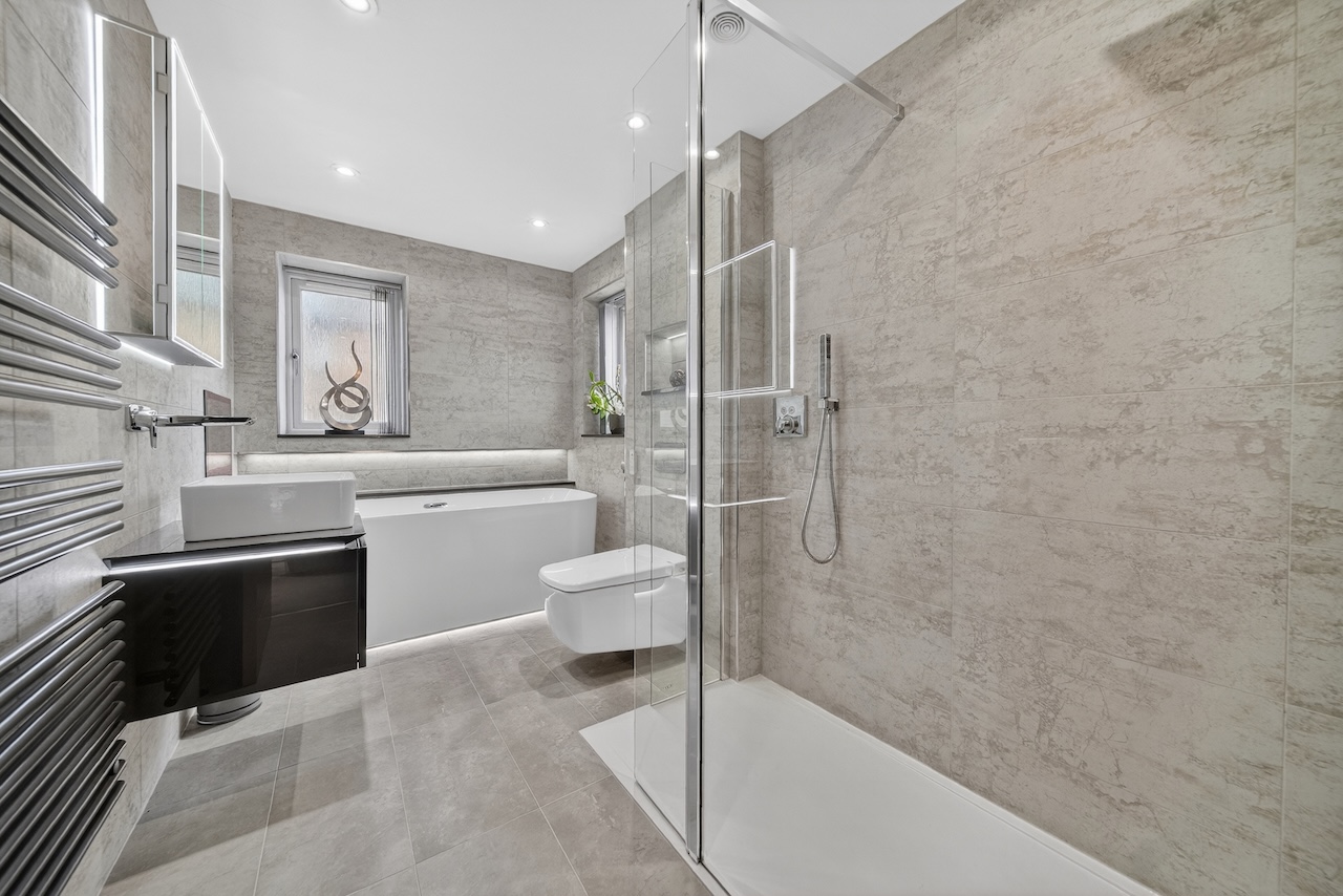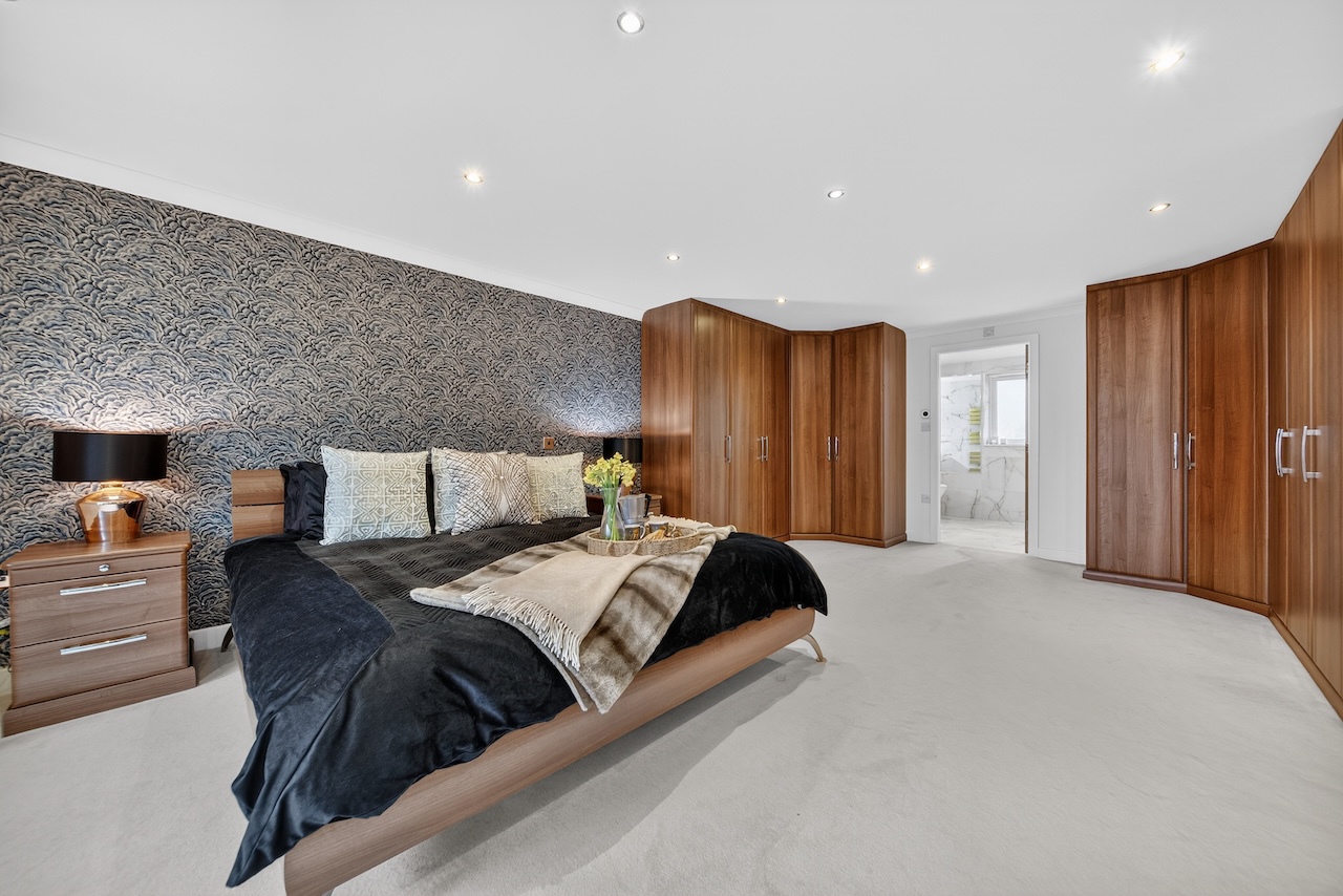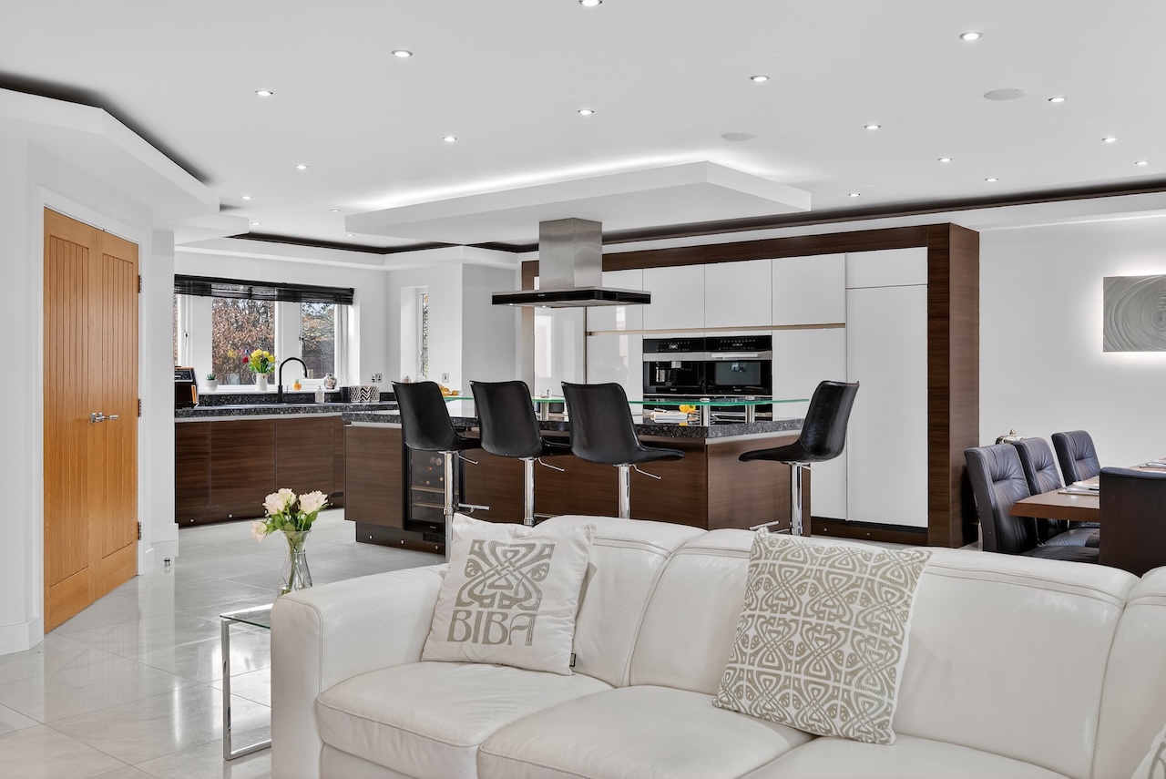 There is a sense of home when you arrive at Southgate Court. Generous grounds sit behind electric gates which glide open to a sweeping brick driveway. To the right, the triple garage stands ready to greet you upon your return and houses a useful EV charger. Through the front door, which is surrounded by double height windows, the grand entrance hall is flooded with sunlight. A gentle warmth from underfloor heating welcomes you home, setting the tone for what’s ahead.